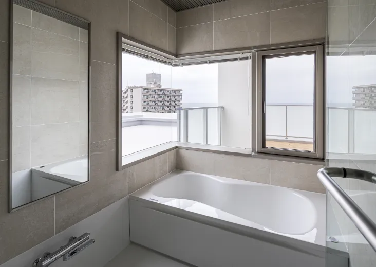 部原海岸を一望する高台に位置し、太平洋の美しい景色をお楽しみいただけます。朝日や夕日、四季折々の海の表情が日々の生活に彩りを添えます。