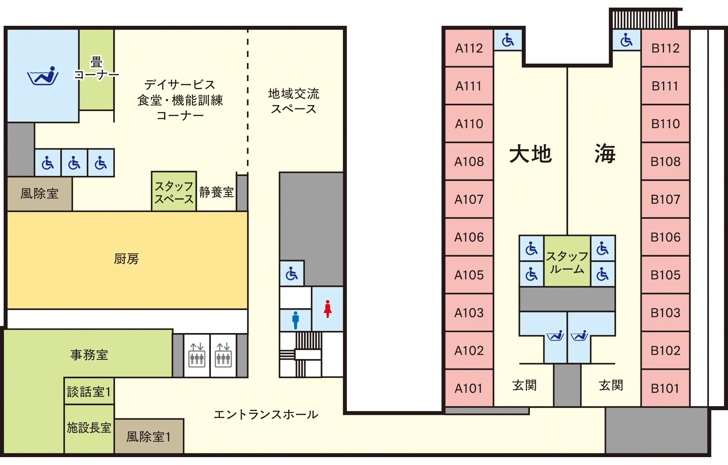 2025年5月に完成したばかりの新しい施設です。バリアフリー設計はもちろん、最新の介護設備と快適な居住空間で、安心・安全な生活をサポートします。