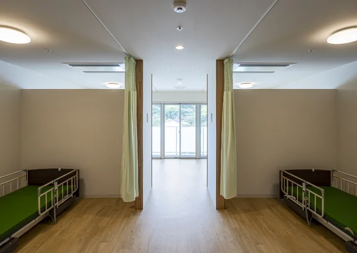 プライバシーに配慮した間仕切りを設置した4人部屋です。